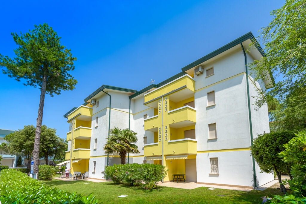 Il Residence Pineda è un condominio di quattro piani con ascensore, situato a 50 metri dalla spiaggia e dal centro di Bibione Pineda.