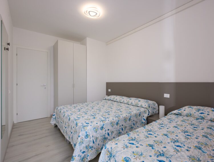 Appartementhaus, gut ausgeführt, zirka 100 Meter vom Strand entfernt, mit zwei Aufzügen und einem Gemeinschaftsgarten erreichbar.